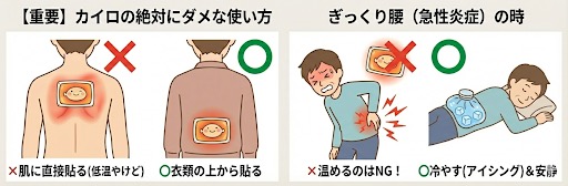 【要注意】逆に悪化するかも!?カイロのNGな使い方